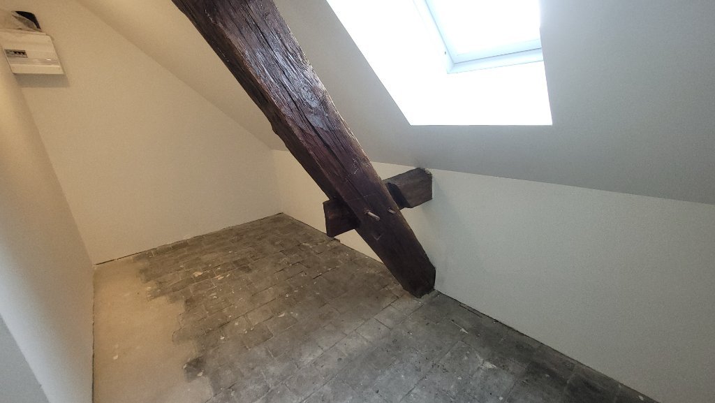 A l'étage : une chambre, un dégagement avec placard, une pièce annexe