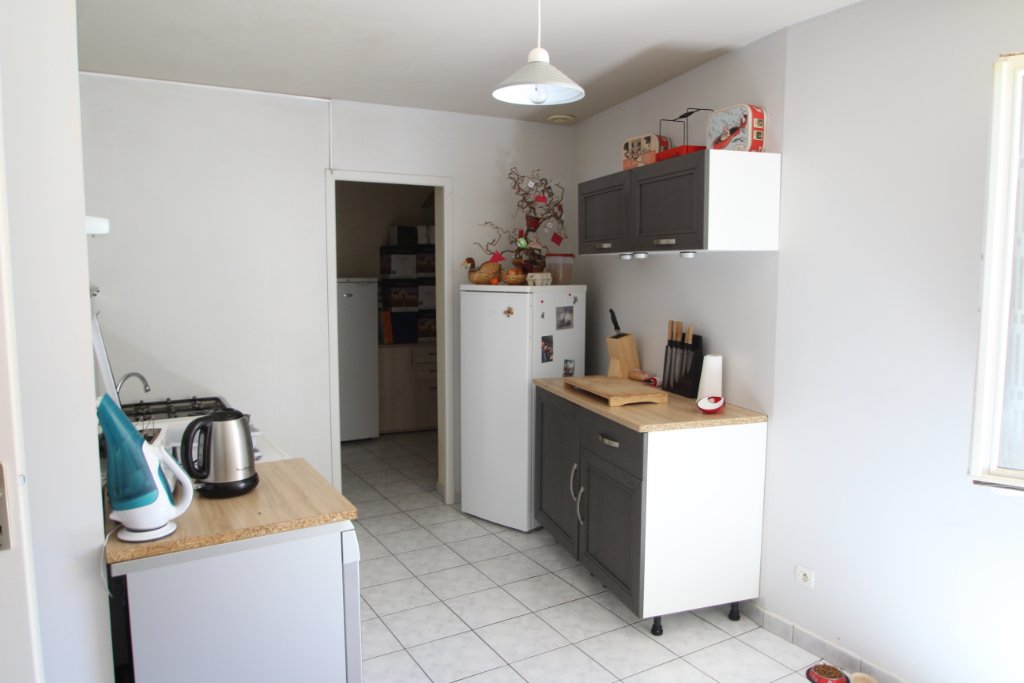 Appartement en RDC comprenant : entrée avec placard, cuisine avec cellier, séjour, deux chambres, salle de bains et un WC
