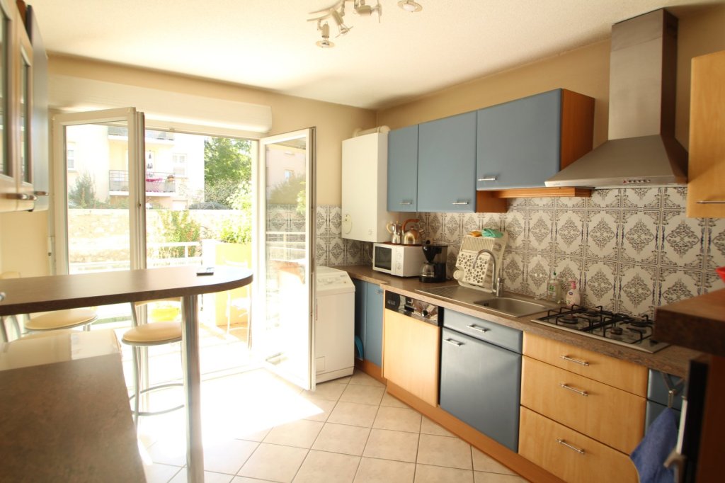 AUTUN - Proche centre-ville - Dans une résidence sécurisée. Au premier étage, un appartement traversant de 78.84m² qui comprend une entrée avec placard, une cuisine meublée et intégrée, un salon/séjour (les deux donnant sur une balcon et un jardin !), un dégagement avec placard, une salle de bain, un WC et deux chambres donnant sur une seconde terrasse. Cave, garage. Etat impeccable pour cet appartement avec chaudière neuve au gaz, fenêtres PVC double vitrage et volets roulants. NEYRAT Immobilier AUTUN - Denis CONTASSOT : 06-17-33-56-56.