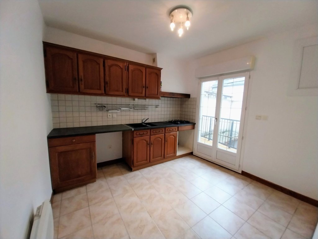 - Cuisine équipée (hotte, plaque gaz) donnant sur balcon