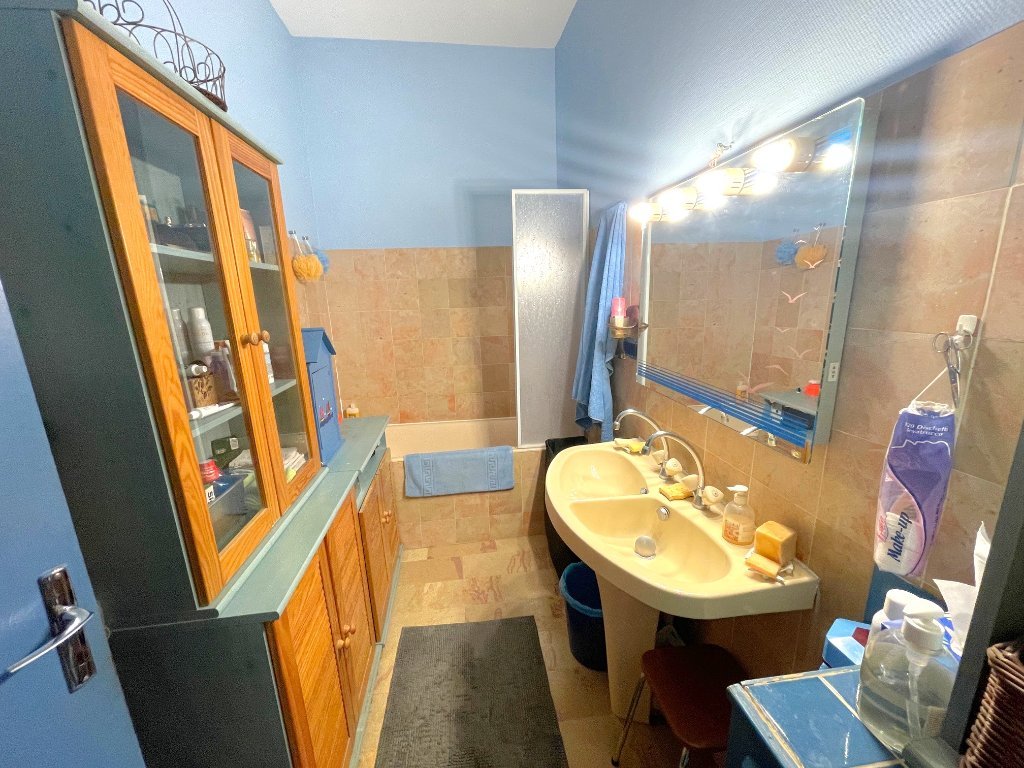 Il comprend une entrée, un couloir avec placard, un salon séjour, une alcôve, une suite parentale avec salle de douche et wc, une chambre, un wc et une salle de bain. Remise et cave complètent ce lot.