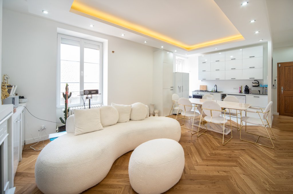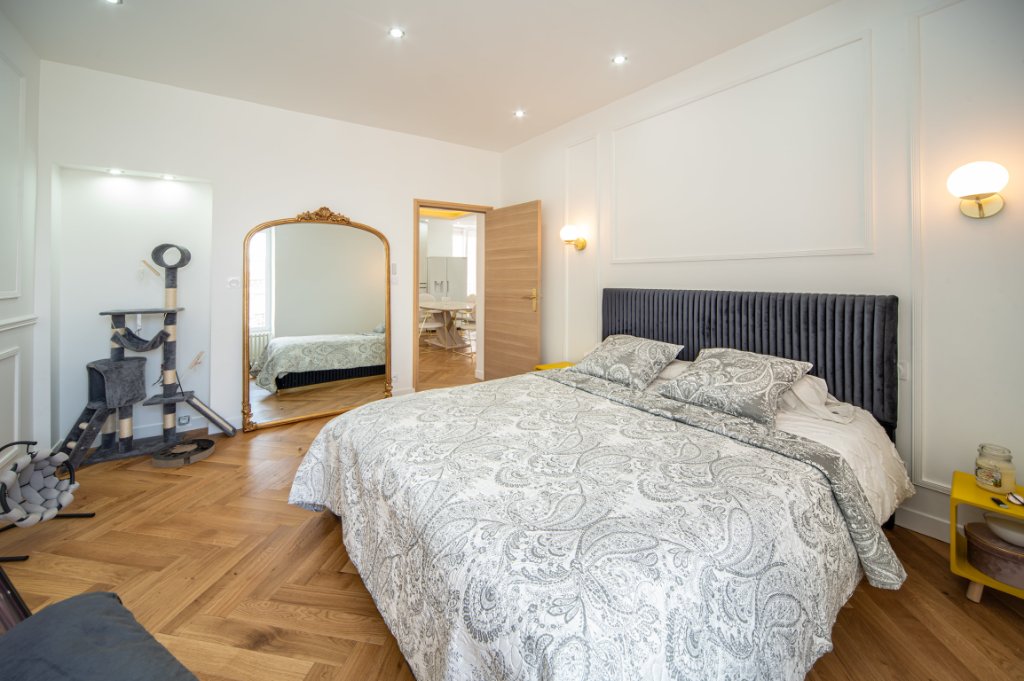 A 2 pas du centre ville, dans une rue calme , petit immeuble à faibles charges, appartement en duplex de standing avec matériaux de qualité (parquets massifs, moulures, marbres, isolation.....) comprenant un grand séjour ouvert sur cuisine meublée et équipée, trois chambres, une salle de bains, un wc, dégagement avec rangements. La rénovation complète de cet appartement a été ralisée il y a 2 ans. L'appartement peut etre vendu meublé tel que sur les photos.