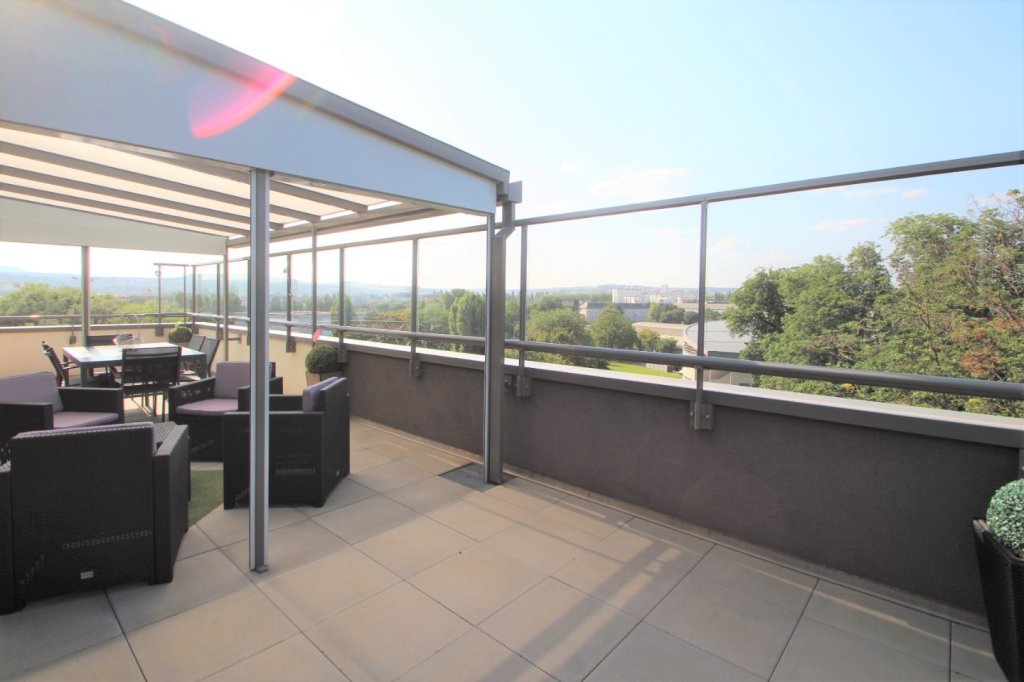 Exclusivité Neyrat. Appartement coup de cœur. Dijon Castel. Centre ville à pied, proche des commerces et écoles. Résidence de standing avec ascenseur, édifiée en 2016. Prestations de qualité pour cet appartement contemporain, situé au sixième et dernier étage. Belle luminosité et vue dégagée sur la ville et l'Ouche à l'ouest et sur un parc classé à l'est. Magnifique terrasse carrelée de 56.5 m² équipée d'une pergola avec stores électriques intégrés et de deux stores bannes électriques. Pièce de vie de plus de 34m² avec cuisine ouverte aménagée et équipée. Trois chambres avec dressings aménagés dont une suite parentale avec salle d'eau. Une salle de bains. Deux water-closets. Ses annexes : un garage et une place de parking privative. Local vélo dans la résidence. Climatisation réversible, volets roulants électriques, interphone/visiophone, ...