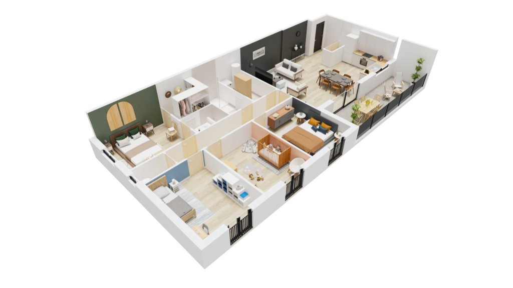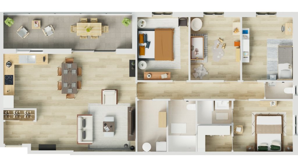 - Cuisine ouverte sur séjour : 43.1 m2