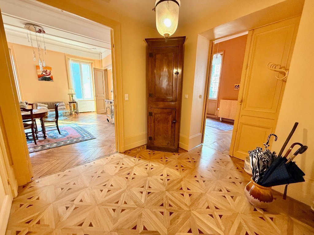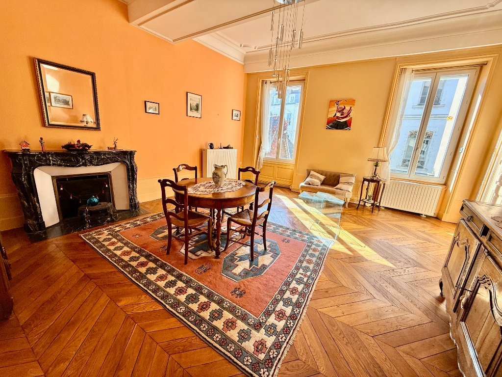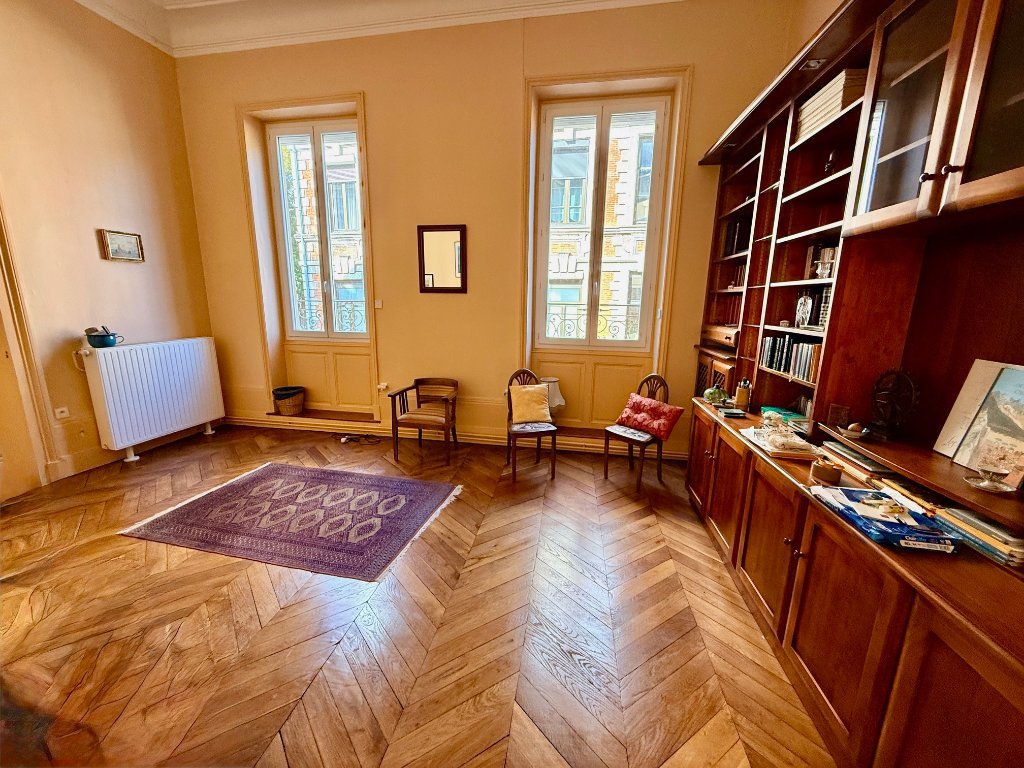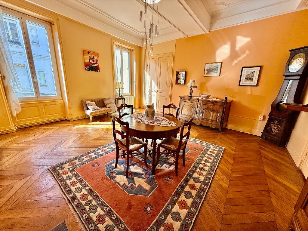 Bel appartement de 169,15 m² situé en centre-ville, au deuxième niveau d'un immeuble de deux étages, offrant un agencement spacieux et lumineux. L'entrée distribue un séjour de près de 30 m² et un salon indépendant de 23 m², pièces de réception baignées de lumière naturelle et propices à la vie familiale ou à la réception d'amis. Trois balcons complètent les espaces, permettant de profiter d'un air extérieur et d'un point de vue urbain.